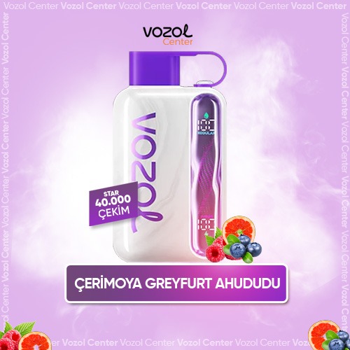 Vozol Star 40000 Cherimoya Grapefruit Berries, tropikal cherimoya meyvesinin kremamsı yapısını, greyfurtun hafif ekşiliği ve orman meyvelerinin tatlı aromasıyla birleştirir. Her çekimde yumuşak geçişli ve dengeli bir tat profili sunar. Cihaz, kısa sürede şarj olan bataryası ve 40.000 çekim kapasitesiyle uzun süreli bir kullanım sağlar. Bu seri, meyve karışımlarını doğal tatlarla seven kullanıcılar için ideal bir seçenektir.