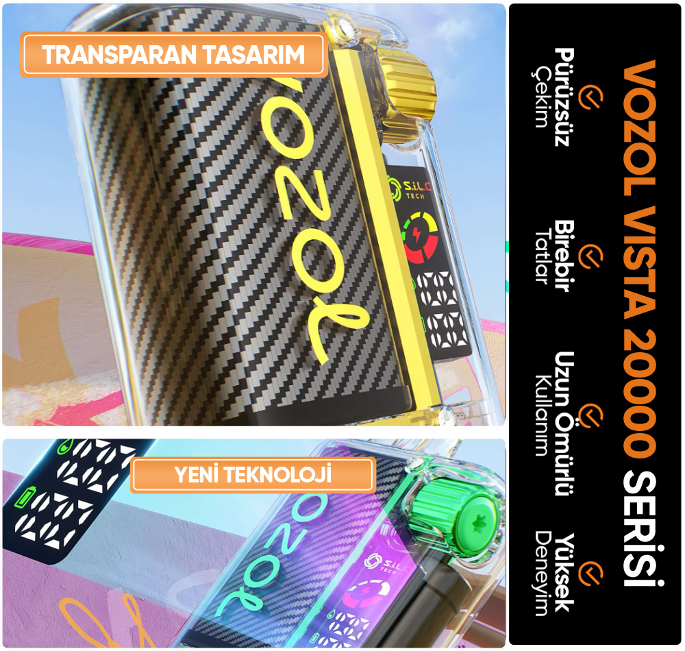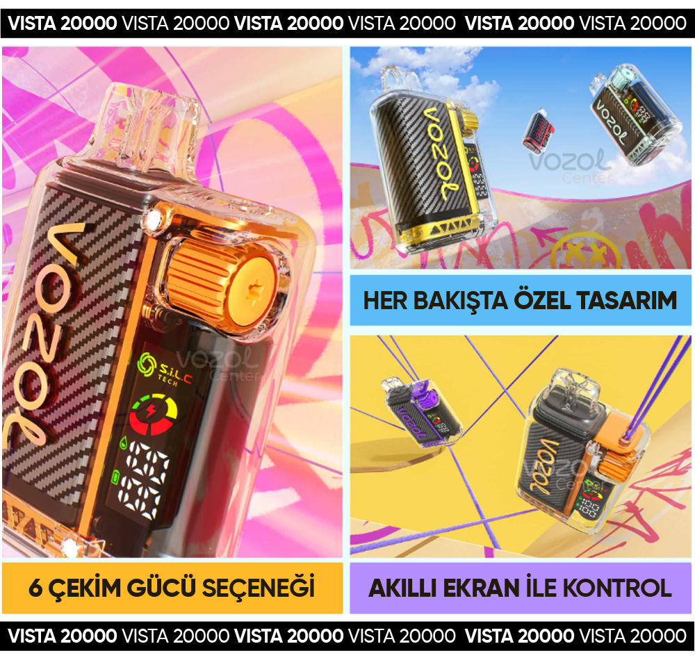 - Vozol Vista 20000, yüksek çekim kapasiteslidir. 20 bin çekim gücüne kadar çıkmaktadır.